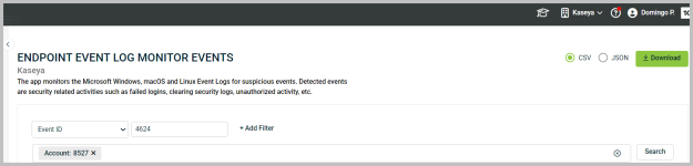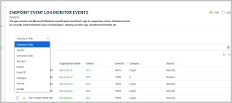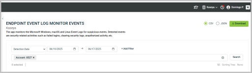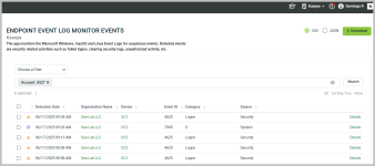 In the example above, results will only be displayed if the Detection Date is between 06/10/2025 AND 06/17/2025 AND the event id is 4624.