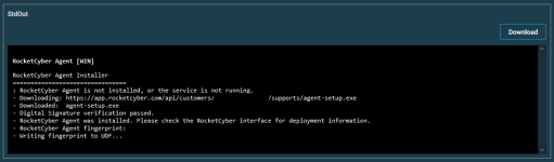 - If the script does not detect an installed agent, it will download the agent installer package to the local machine and execute it.