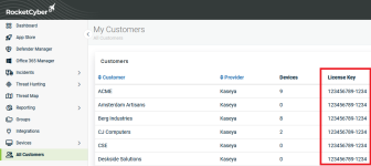 - Repeat Steps 2 - 5 for other sites with the corresponding license keys in RocketCyber if you are deploying agents to additional organizations.
