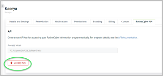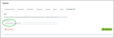 The RocketCyber API access token is essential for authorizing access to the RocketCyber API. You can locate this token in the RocketCyber API tab on the Provider Settings page.