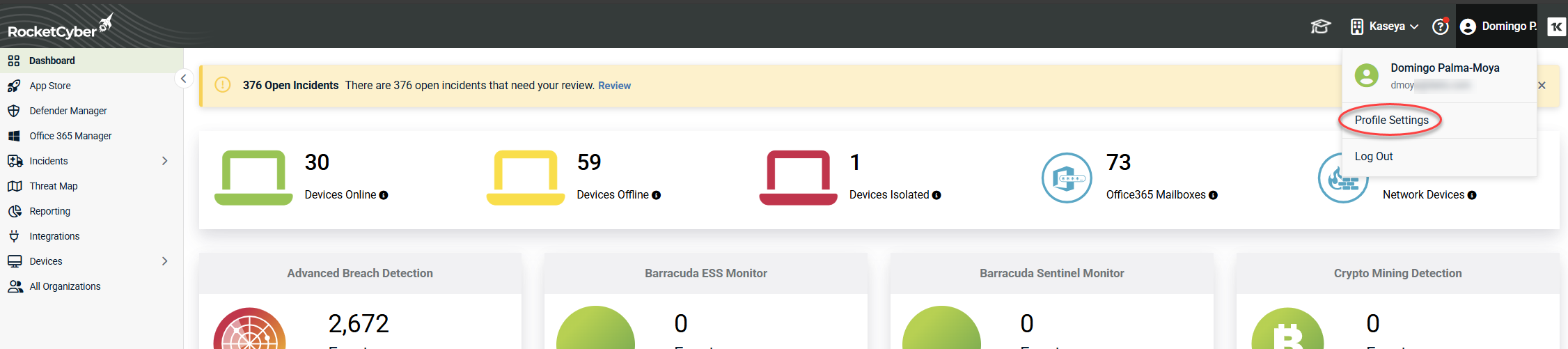 NOTE If you purchased RocketCyber as a standalone product and do not access it through KaseyaOne, see Standalone: Getting started with RocketCyber.