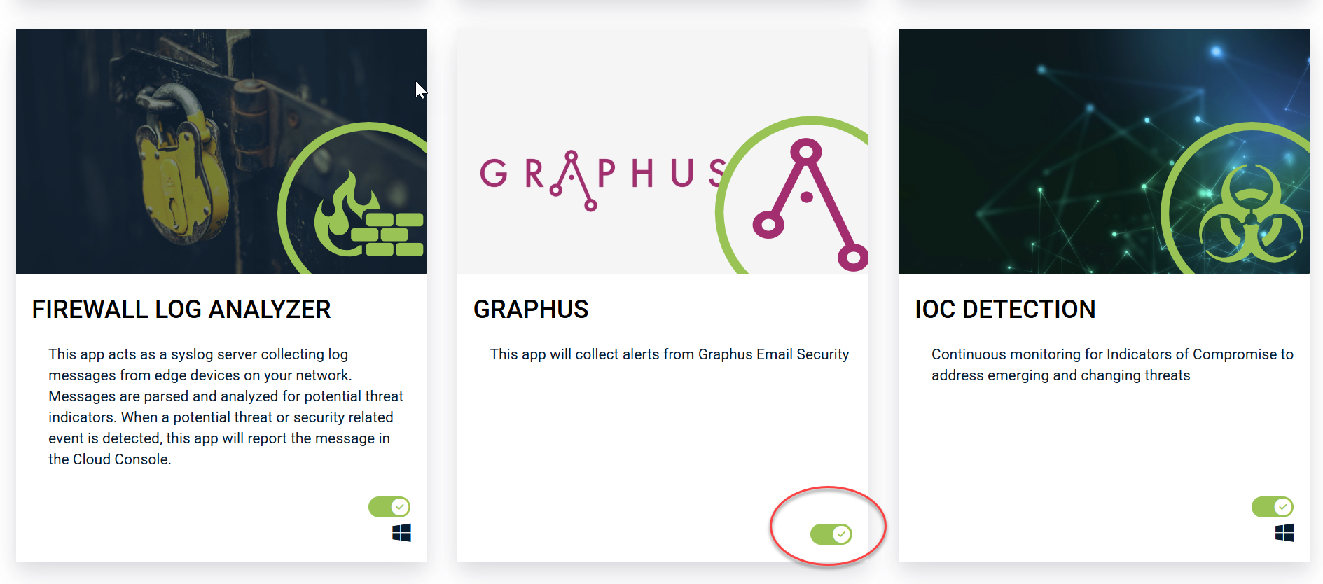 5. Ensure your Graphus app is enabled in the RocketCyber App Store