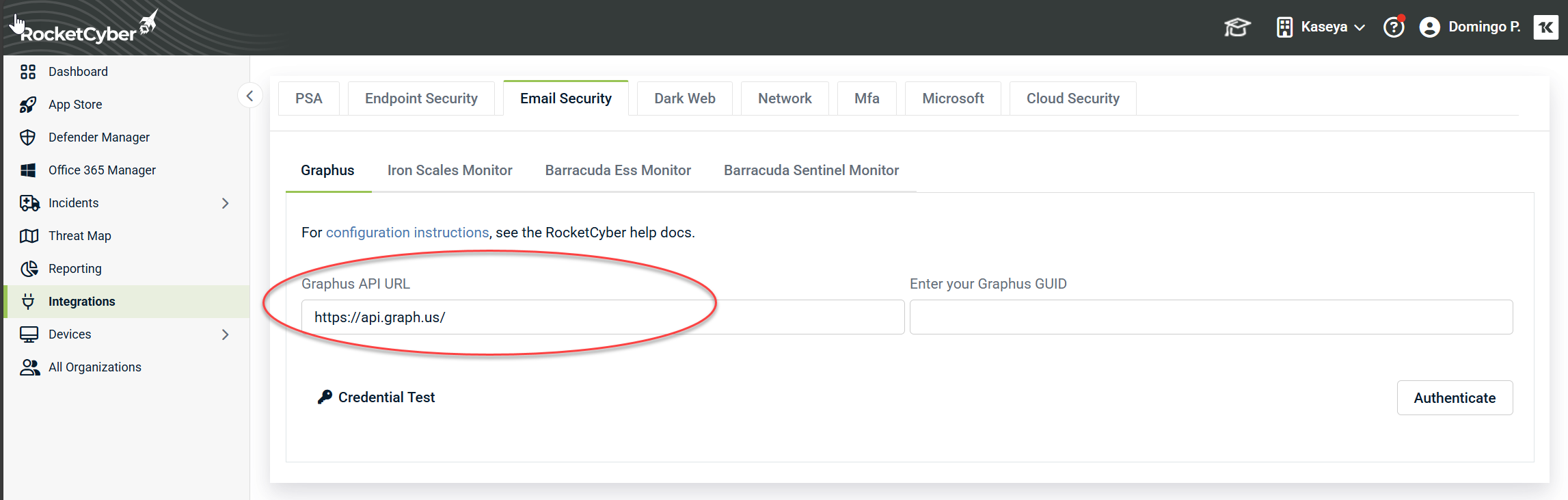Perform the following steps to ensure data is passed to RocketCyber from Graphus: