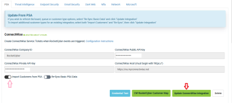- ConnectWise cannot create a service ticket unless it is associated with a specific company. Toggle the Import Organization from PSA then Update Connectwise Integration.