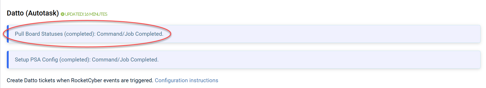 15. Once the organizations are mapped you can configure the Status for Closed Tickets to enable two-way ticket sync. By default the field is set to Complete, so any RocketCyber incident tickets marked as Complete in Autotask will automatically resolve the corresponding incident in RocketCyber. You can customize this field to use a different status if you'd like.