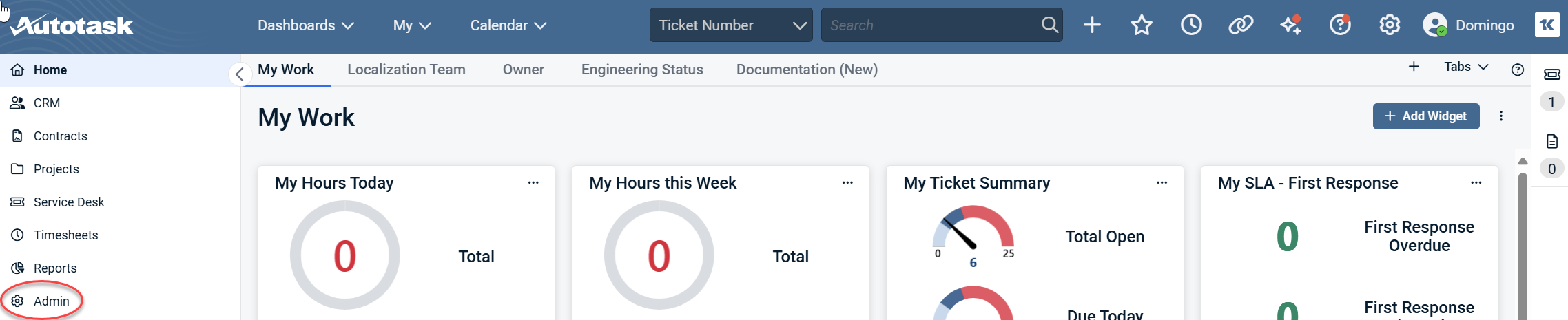 To configure Autotask for importing organizations and automatically creating tickets, follow these steps: