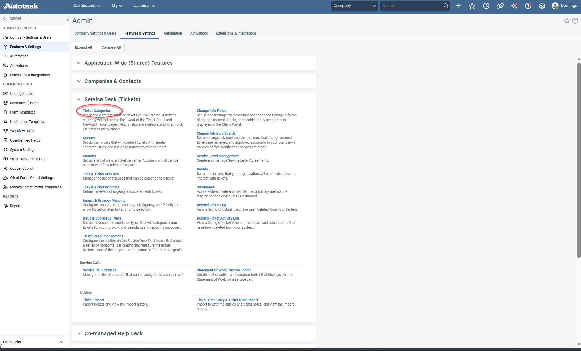 Autotask sets default values for Due Date and Due Time for the Standard ticket category. RocketCyber relies on these default values for automated ticket creation. If your PSA tickets are not being generated, please verify that the default offsets for Due Date and Due Time are configured properly. If these setting indicate No Default (user entry required), the tickets will fail to be generated, as these are required fields.