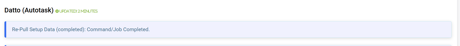 NOTE If you wish to refresh the board, queue, or organization type options, turn on Re-Sync Basic PSA Data and click Update Integration. You will see this message once the process is complete.