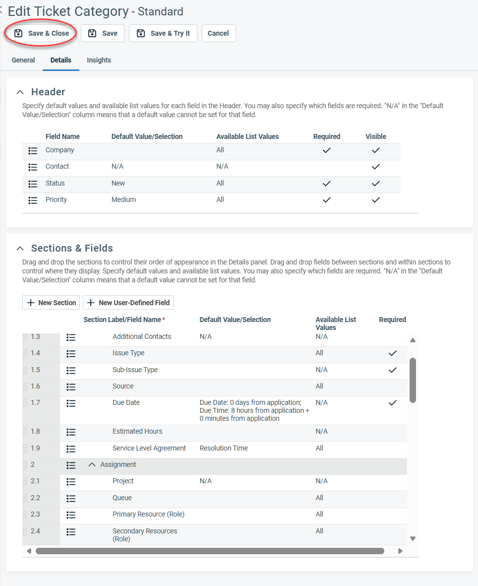 - Finally, click Save & Close on the Edit Ticket Category view. Changes will be lost if this step is not completed.