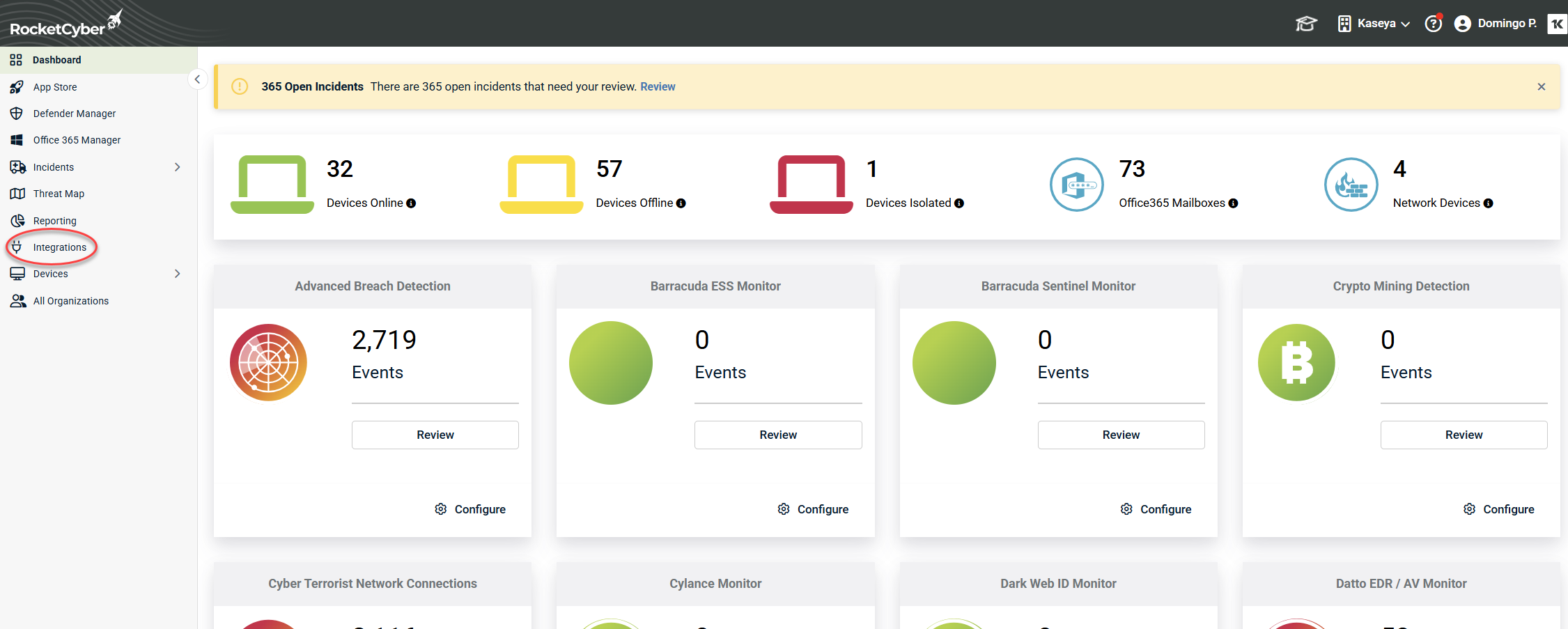 - Click Integrations on the side navigation menu