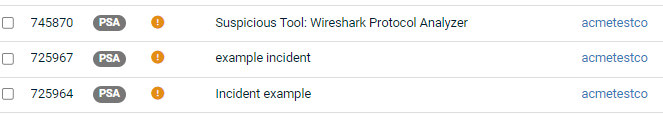 - Incident tickets will now be created in the ticketing system by showing the PSA tag next to the alert in the Incidents list.