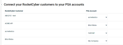 - Return to PSA tab and select XXXXX-RocketCyber Organization map.