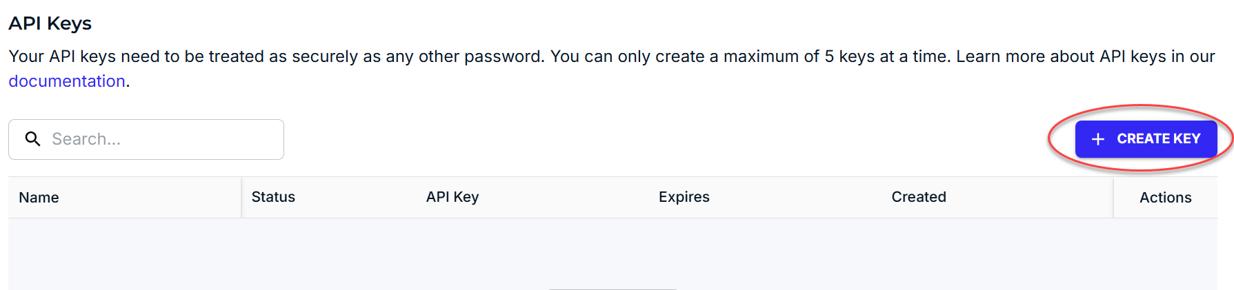9. The API key is now visible in the dashboard. You can use the API key in RocketCyber by following its standard configuration process. For more information on DNSFilter API keys, refer to API Keys.
