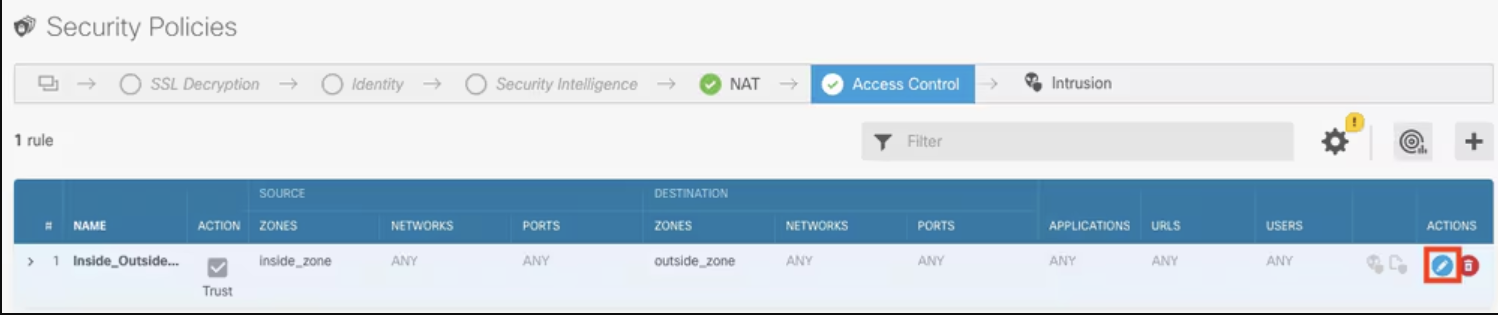 2. Edit ACP rule: Hover over the target ACP rule and select the pencil icon.