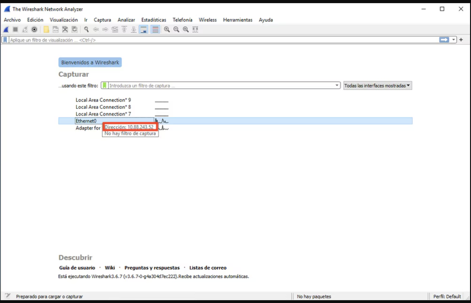 3. Verify communication: Ensure that packets are reaching the network interface card on the Syslog Server. Use Wireshark or a similar utility to start capturing packets. Double-click on the interface in Wireshark dedicated to the Syslog Server.