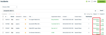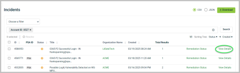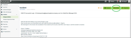 Once the remediation has completed successfully the status of the incident will change to resolved.