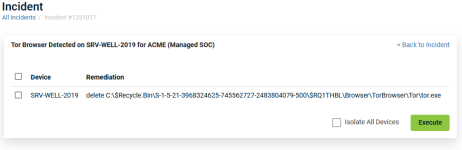 Isolate All Devices - This option will isolate the device during the remediation process. The process of isolation will prevent the device from communicating on the network with any other destination except the RocketCyber cloud.