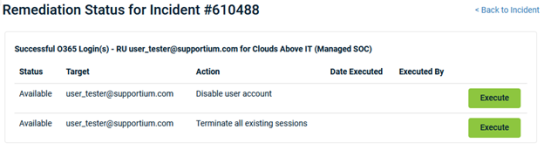 This feature uses the same workflow as our existing device remediation feature. In the details of any incident from 365 Login Analyzer or 365 Risk Detection, click Remediate.