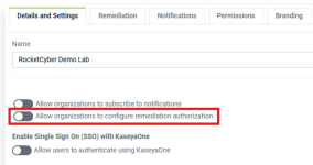 By default, these settings are not available at the organization level. To allow organizations to set custom remediation settings, enable the Allow organizations to configure remediation authorization toggle in the Provider Settings: